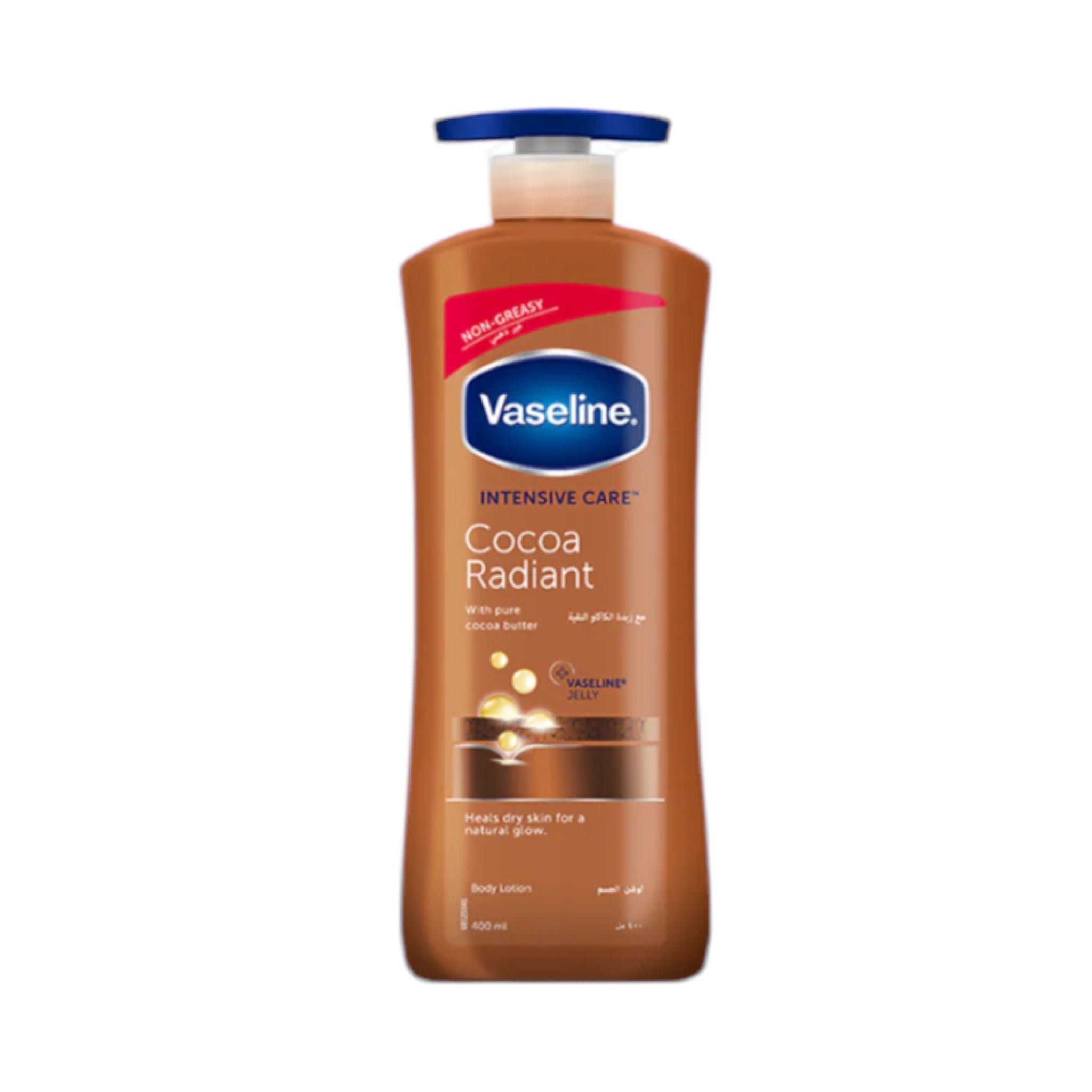 - Vaseline Intensive Care Cocoa Radiant Lotion made with cocoa butter moisturizes to heal dry, dull skin to reveal its natural glow