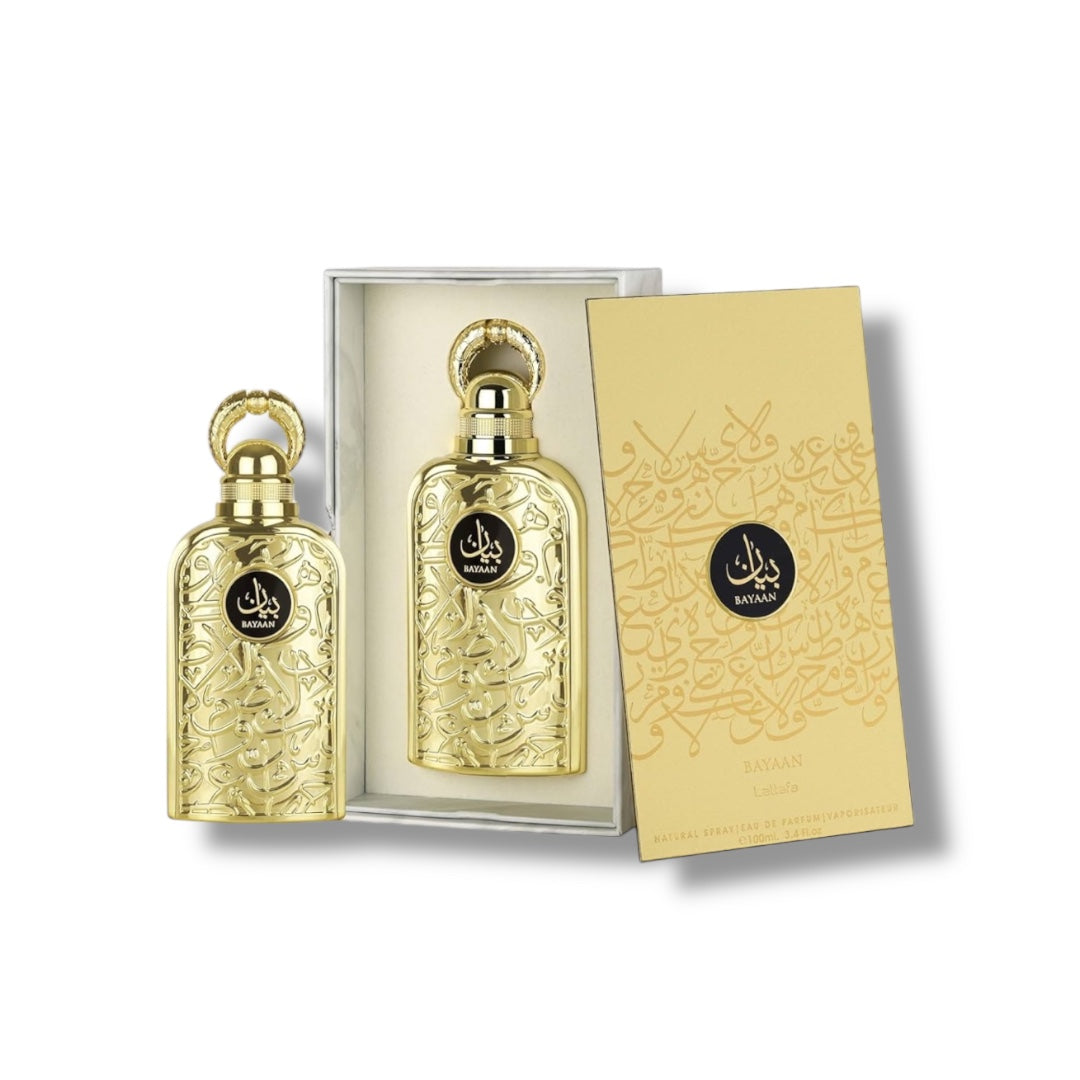 Discover the captivating blend of Cassis, Litchi, and Pink Pepper in Lattafa Bayaan. Immerse yourself in the enchanting scents of Rose, Praline, and Cardamom. Let the sensual base notes of Moss, Oud, and Vanilla intoxicate your senses. Indulge in this luxurious fragrance and exude passion and elegance.