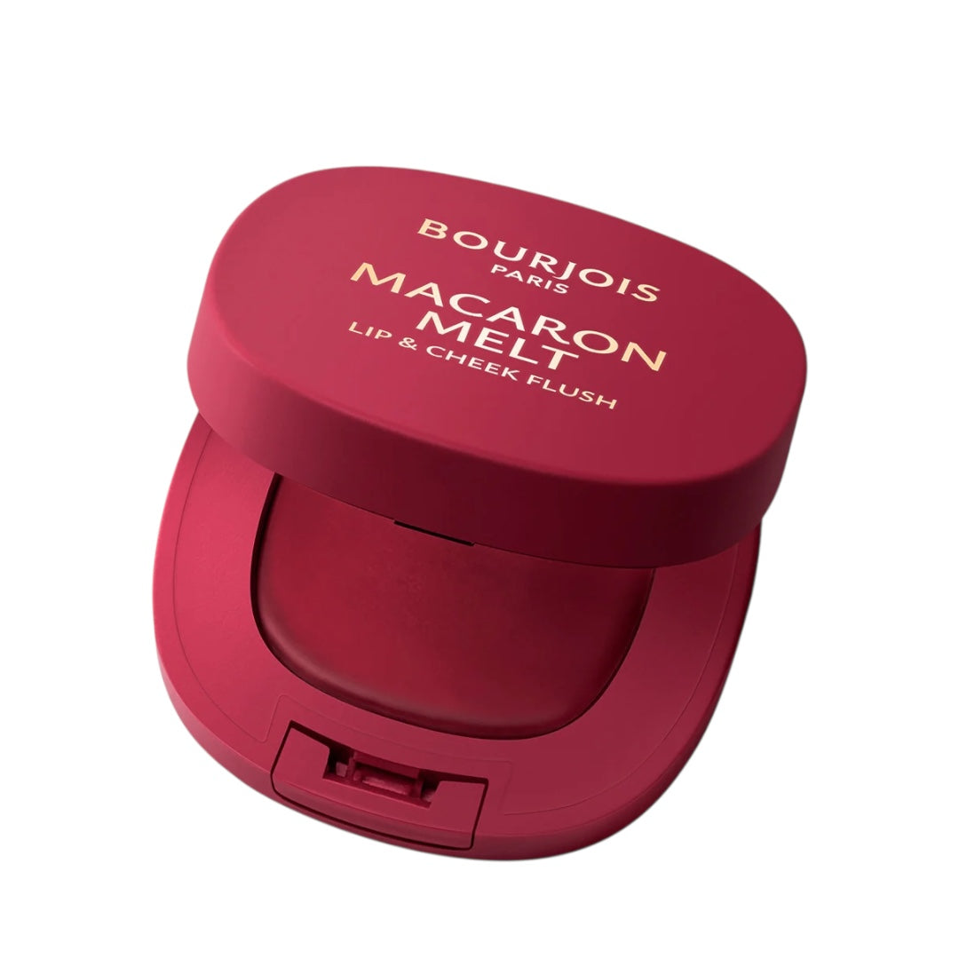 Bourjois Macaron Melt is a dual-purpose cream-to-powder lip and cheek flush that delivers a matte, blurred finish with buildable colour.