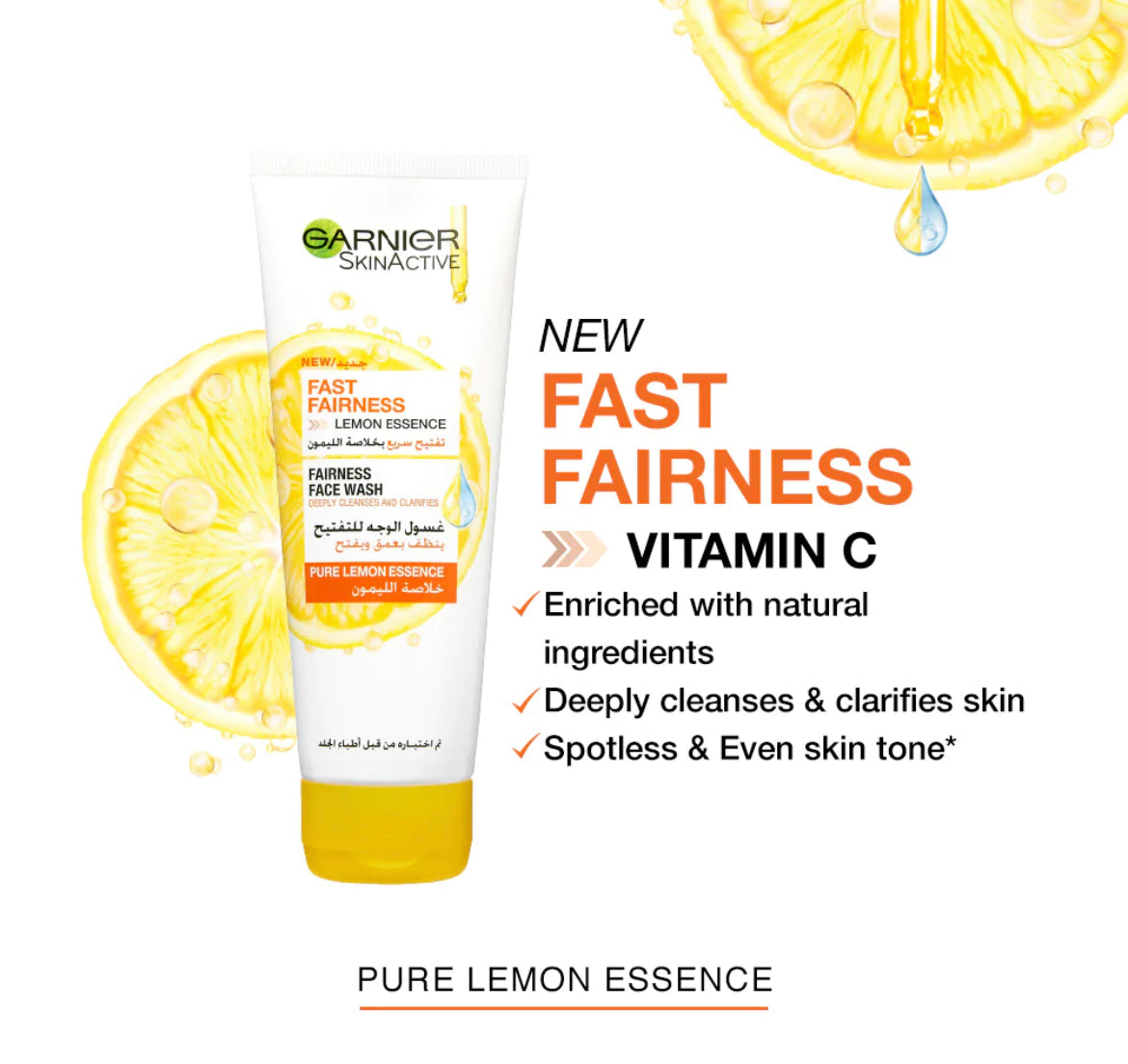 Garnier Fast Bright Face Wash deeply cleanses and brightens the skin. Its formula, enriched with Pure Lemon Essence, helps reveal a clear radiant even complexion.