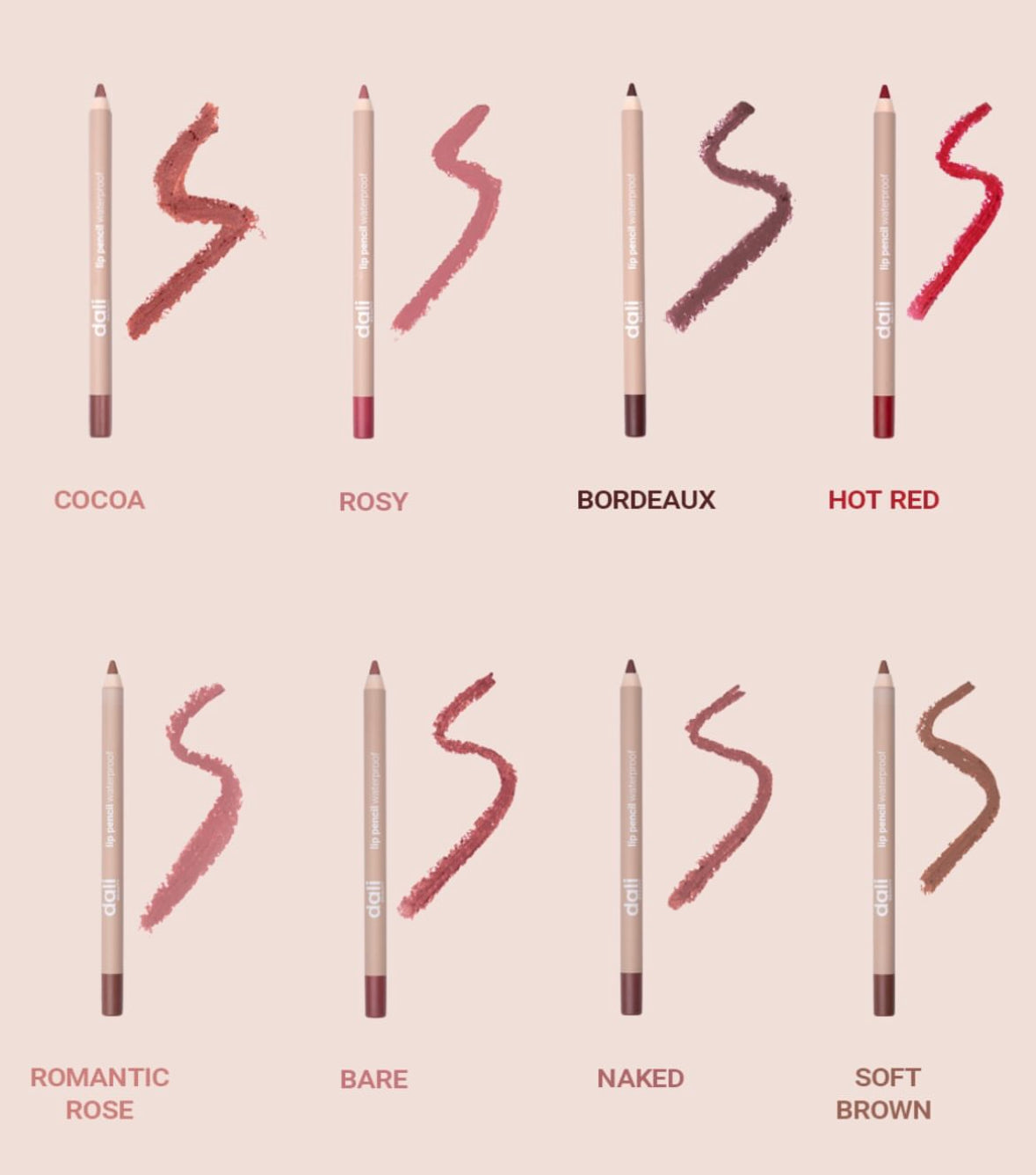 Dali’s Waterproof Lipliner easily contours and fills your lips. Its creamy smudge-proof texture and precise application offers high-definition contour.