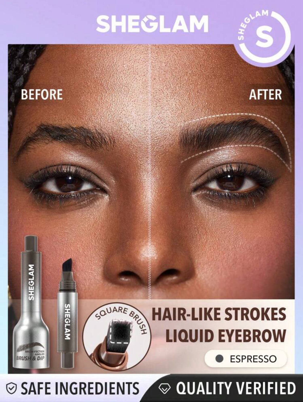 SHEGLAM Brow-Fection Angled Brush & Dip-Chocolate Hair-Like Strokes Liquid Eyebrow Gel Pen