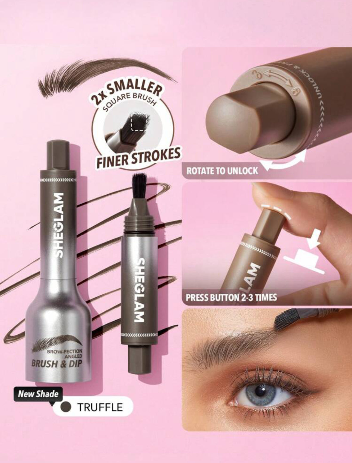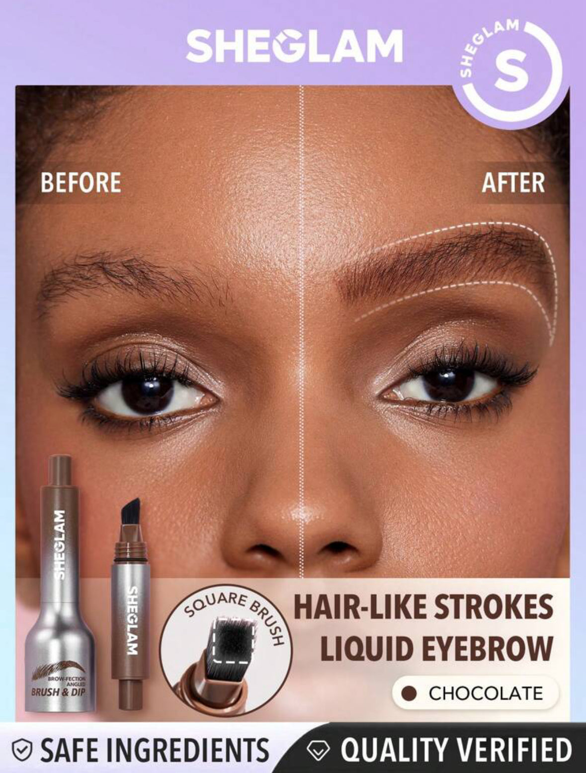 SHEGLAM Brow-Fection Angled Brush & Dip-Chocolate Hair-Like Strokes Liquid Eyebrow Gel Pen Easy To Color Long Lasting Quick Drying Natural Shaping Outlining Filling Eyebrow Makeup