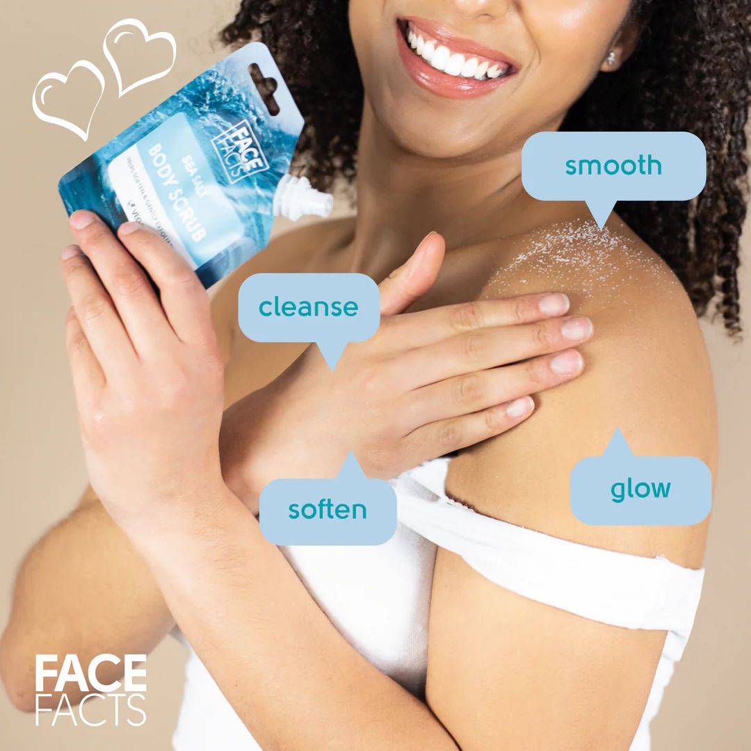 Face Facts Sea Salt Body Scrub Natural Exfoliating Walnut Powder 150g