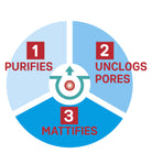 Combining three benefits in one, the 3 in 1 helps target oily, shiny skin prone to impurities.