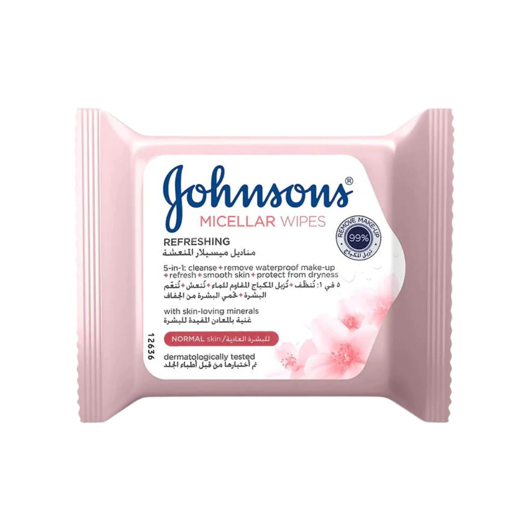 Johnson's Facial Wipes Micellar Refreshing Normal Pink 25 Pieces