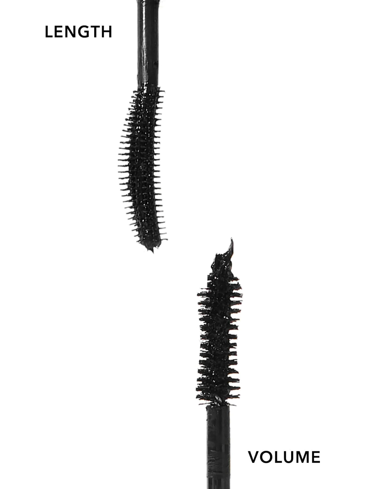 Brush 1: Lifted and Luscious Eyelashes Our patented silicone brush has a curved silhouette with nine rows of bristles and two loading arches. It’s designed to perfectly sweep up every last lash – even the tiniest ones. Our volumizing formula glides effortlessly through your eyelashes to create a volumized, lifted, and curled look. Brush 2: Intense Volume Our second brush boasts an hourglass shape, designed to fan out the lashes and create intense volume. The buildable and lash thickening formula is designed for maximum drama, making it an essential for transforming your day look into your night look.