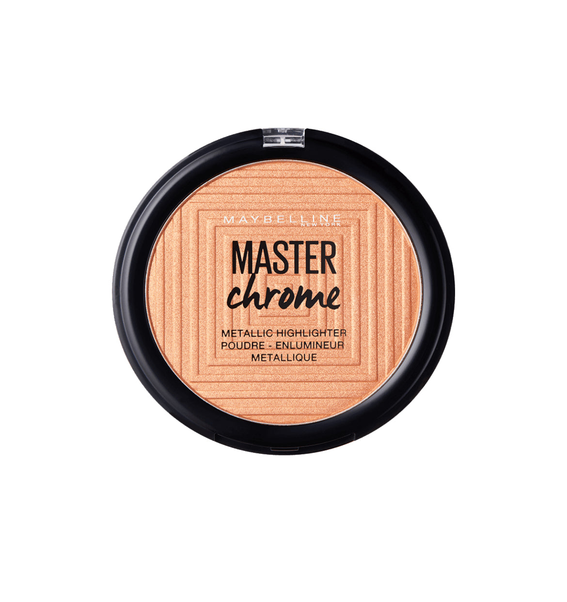 Master Chrome Metallic Highlighter effortlessly envelopes the skin in a molten metal sheen. Meet the secret to brilliant and luminous skin. This highlighter powder drenches skin in a melted metallic finish. Maybelline's pearl pigments leave a reflective finish for a brilliant glowing skin.