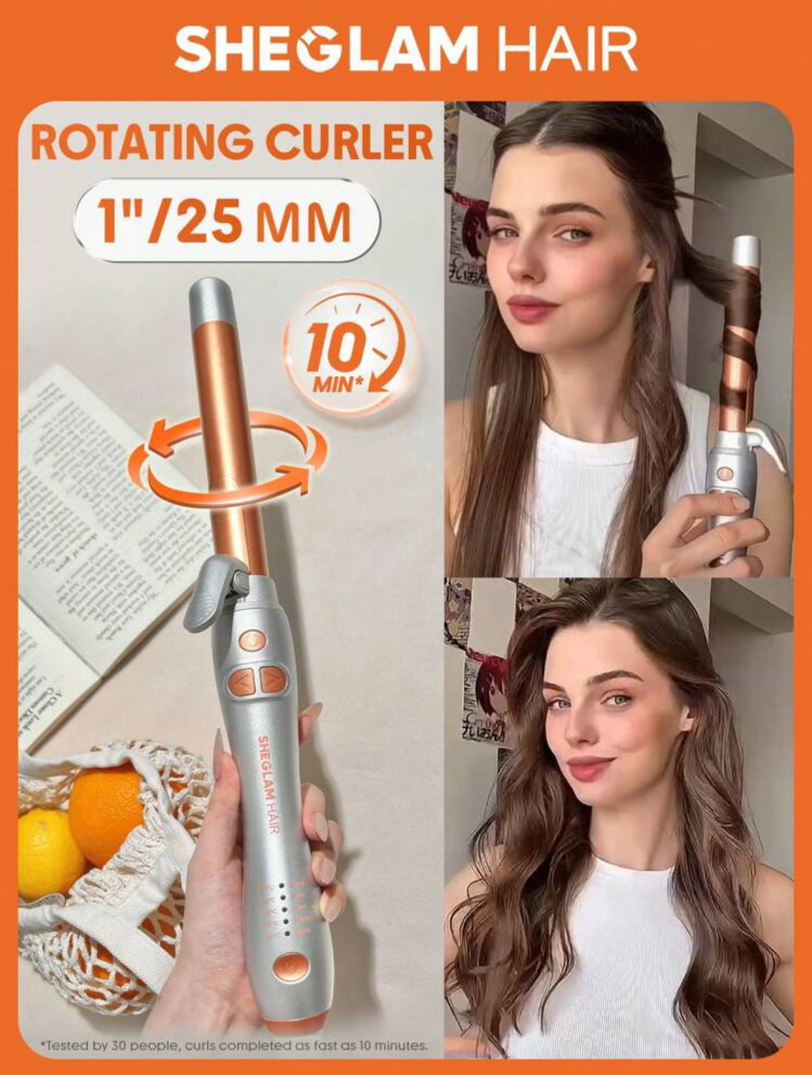 Experience the ultimate in curling technology with our Rotating Curling Iron, featuring a 25mm barrel for effortless, long-lasting curls.