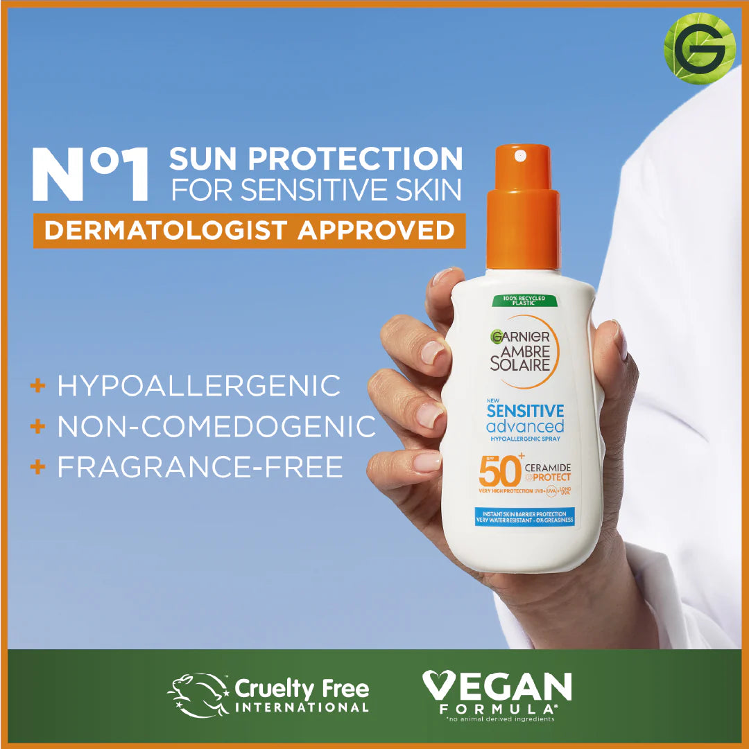 Garnier Ambre Solaire Sensitive Advanced SPF 50+ Ceramide Protect Sunscreen Spray For Adults 150ml