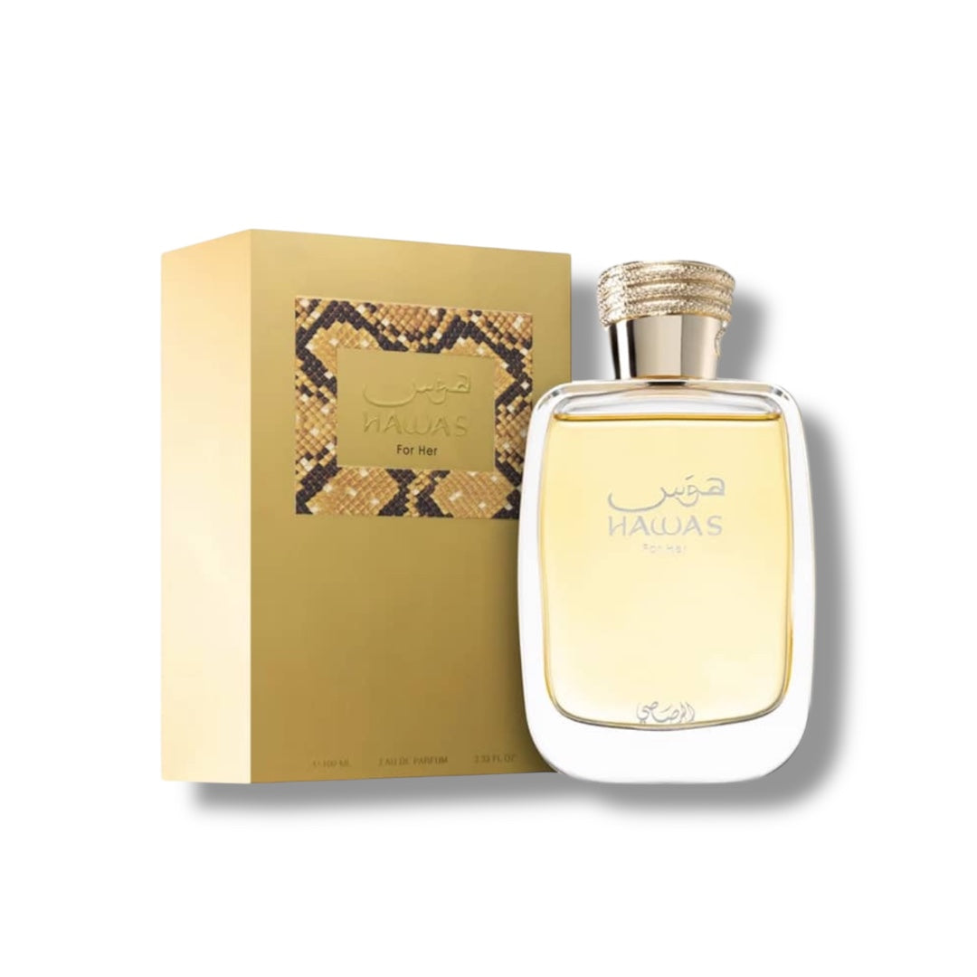 Experience the alluring scent of Hawas For Her. With top notes of Apple, Pomegranate, and Grapefruit, this fragrance is invigorating and refreshing. The middle notes of Iris, Jasmine Sambac, and Citruses add a floral and citrusy touch, while the base notes of Praline, Patchouli, and Vetiver provide a warm and sensual finish. Elevate your senses and feel confident with Hawas For Her.