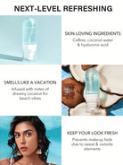Nous aimons notre glamour comme nous aimons notre amour : éternel. Mais parfois, la transpiration et les éléments extérieurs peuvent faire disparaître notre maquillage. La solution ? Gardez votre look frais du matin au soir avec notre spray fixateur parfumé à la noix de coco. C'est comme un remontant dans une bouteille qui sent comme des vacances à la plage. Astuce : vous voudrez garder ce bébé sur vous en permanence.