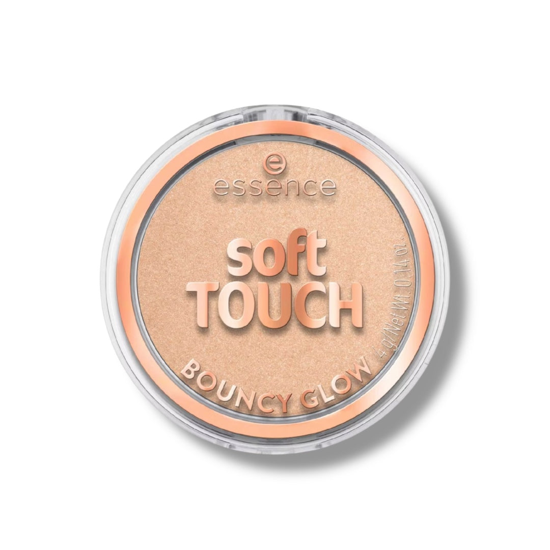 Essence Soft Touch Bouncy Glow is a 4 g cream-to-powder highlighter delivering a sheer, glass-like dewy finish. Its unique bouncy texture transforms into a silky powder on the skin for seamless blending and long-lasting luminosity. Formulated with jojoba, squalane and vitamin E, it hydrates skin while providing light-reflecting radiance suitable for all skin types. Application is precise and buildable; gently tap with fingertips on cheekbones, brow arches and the bridge of the nose for targeted highlight. The compact 65 mm diameter pan and low-profile 16 mm height fit easily into makeup bags and professional kits. Animal-friendly and vegan with a subtle vanilla fragrance, the highlighter is cruelty-free and classified for mass-market wear. Designed to sit naturally over moisturiser and foundation, it layers well under setting spray for extended wear. Each compact arrives sealed in lightweight retail packaging with a product ID 899050, ideal for retail shelving and online listings.